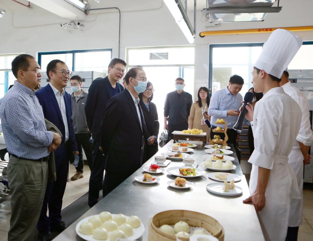调研组参观考察了烹饪学院(顺德厨师学院)实训中心,详细了解太阳官网深入实施“粤菜师傅”工程,以“一人学厨,全家幸福”为宗旨,探索“名校联名店,名店出名厨,名厨带名徒,名徒成名厨”模式,打造烹饪技能人才高地,深化东西协作,助力乡村振兴的做法和成效。