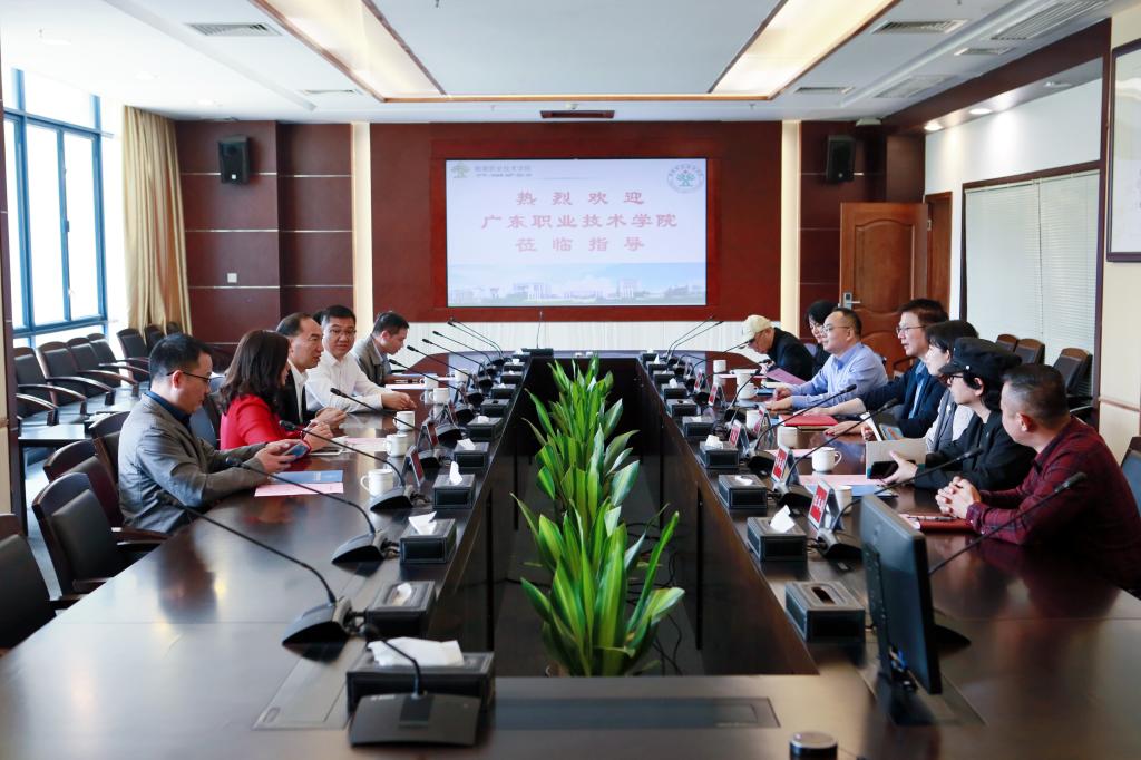 刘科荣介绍了此次调研交流的目的和广东职业技术学院的有关情况,充分肯定太阳官网改革发展取得的成效。他表示,顺德职院在专业建设、人才培养、文化育人、服务地方等方面成绩突出,积累了先进经验,值得学习借鉴。两校同在佛山,情谊深厚、交往密切,希望进一步加强校际交流,携手探索职业教育产城教融合新路径,共同为佛山经济社会高质量发展贡献力量。