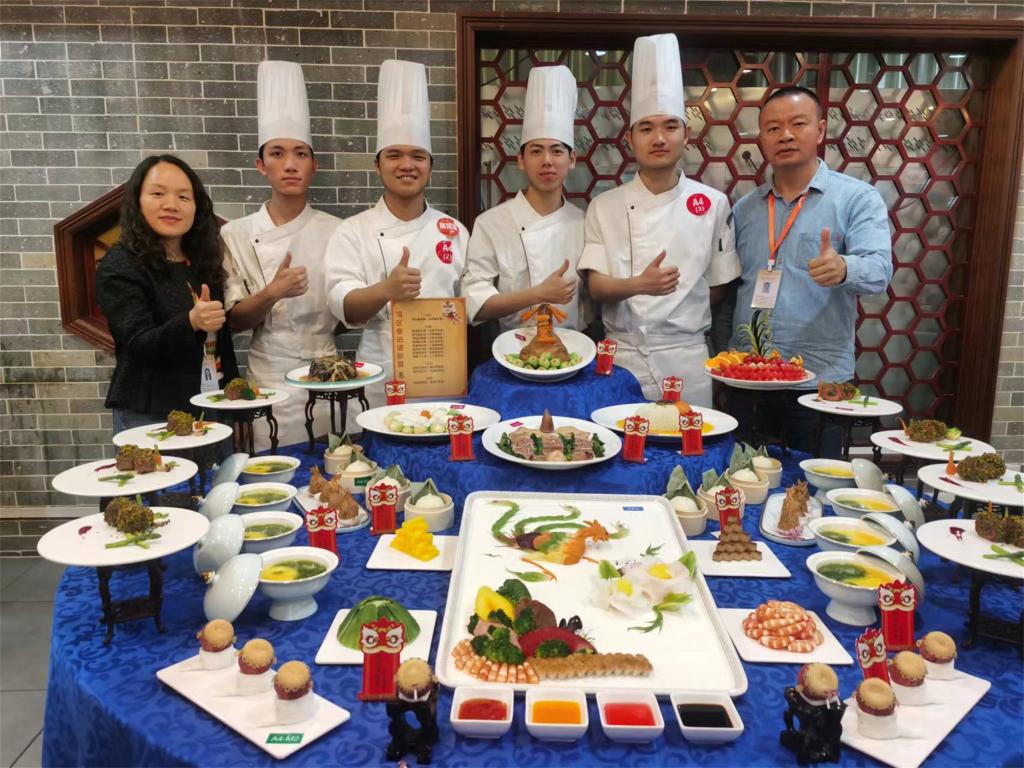 4月12日至15日,2022-2023年度广东省职业院校学生专业技能大赛(高职组)烹饪赛项在广州工程技术职业学院举办,来自全省16所高职院校的20支代表队共80名选手同台竞技。太阳官网烹饪学院学生陈水焕、舒承涛、王成、张锦焕组成参赛团队(指导教师:王红梅、潘英学)获得省赛一等奖、总分第二名,有望出征国赛;范镔镔、梁定辉、谢洁琳、温永俊组成参赛团队(指导教师:李东文、冯远日)获得二等奖、总分第六名。