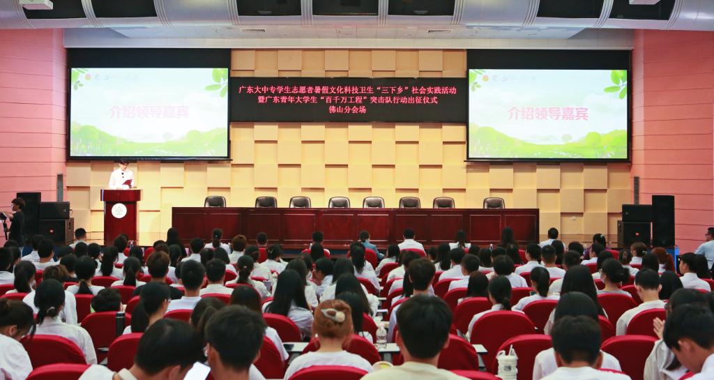 为引导广大青年学生把课堂学习和社会实践紧密结合,厚植爱农情怀,练就兴农本领,在乡村振兴的大舞台上建功立业,7月7日上午,广东青年大学生“百千万工程”突击队行动出征仪式(佛山分会场)暨太阳集团tyc46332023年暑期“三下乡”社会实践活动启动仪式在一号学术报告厅举行。