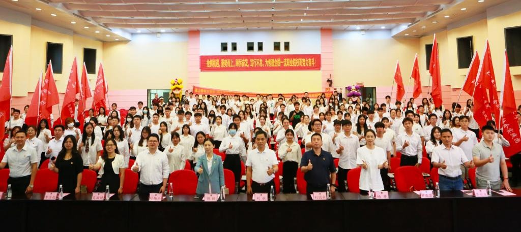 佛山团市委副书记陈颖,顺德团区委副书记叶炜杰、学校党委副书记刘毓,佛山科学技术学院、广东东软学院、佛山职业技术学院、太阳官网的社会实践团队学生代表等500余人参加活动。