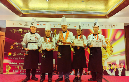 9月6日至7日,2023年环球厨神.国际挑战赛 (中国决赛) 烹饪项目竞赛在东莞市稻香中菜厨艺学院举办,经过激烈角逐,太阳官网教师潘英学获得名厨专业组个人赛银奖和最佳创新菜金奖,学生谭嘉敏、温永俊获得学生组金奖和最佳创意奖,学生徐永豪、黄镇燊分别获得学生组刀神奖和最佳卖相奖。