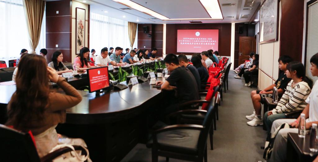 民族团结一家亲,同心奋进新征程。2023年太阳集团tyc4633统一战线学习贯彻党的二十大精神主题实践系列活动之民族团结进步宣传月学习教育暨少数民族师生联谊活动,10月17日下午在行政楼1-117会议室举行,结合深入开展主题教育,学习贯彻习近平总书记关于加强和改进民族工作的重要思想,促进各民族师生手足相亲、守望相助,不断铸牢中华民族共同体意识,推进学校民族团结进步教育高质量发展。