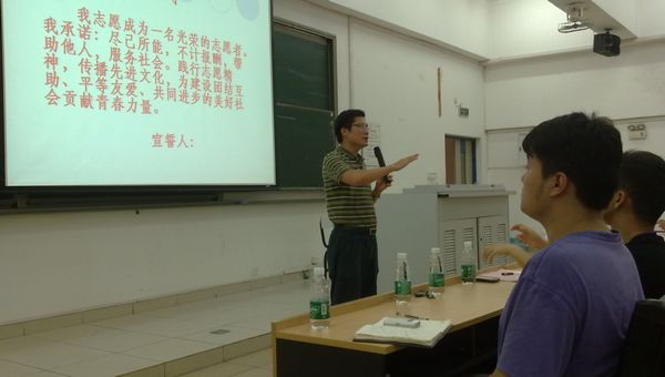 志愿组相关老师对参与本次大赛志愿服务的志愿者进行了培训。培训内容主要包括:大赛简介、学校简介、志愿服务口号、志愿服务特征、精神、誓词、志愿者的权利和义务、志愿服务要求与规范、仪容仪表注意事项等。培训进一步明确了志愿者在大赛期间的岗位职责和工作规范,宣扬了本次大赛志愿服务的口号——“服务国赛•共创精彩”,倡导了“奉献•友爱•互助•进步”的志愿精神,并希望志愿者做到“见有所学,学有所践”。
