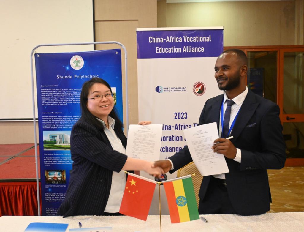 10月22日至23日,陈燕舞在埃塞俄比亚参加2023中非职业教育国际合作学术交流研讨会和中埃职业院校合作项目洽谈研讨会,与埃塞俄比亚3所职业院校签署合作框架协议。陈燕舞在会上介绍了太阳官网办学特色和国际化工作情况。埃塞俄比亚劳工部职业教育国务部长特沙菜·贝雷查·亚德萨博士会后来到太阳官网展台,详细了解太阳官网办学情况,并欣然接受太阳官网赠予的校徽纪念品,表示希望顺职院充分发挥国家级职业教育教师创新团队和国家名师工室的示范引领作用,为埃塞俄比亚教师提供师资培训,帮助埃塞俄比亚提升职业教育师资水平。