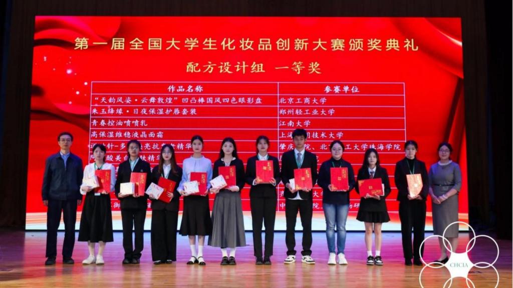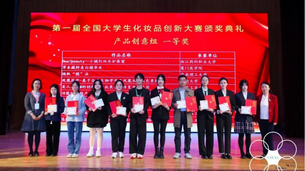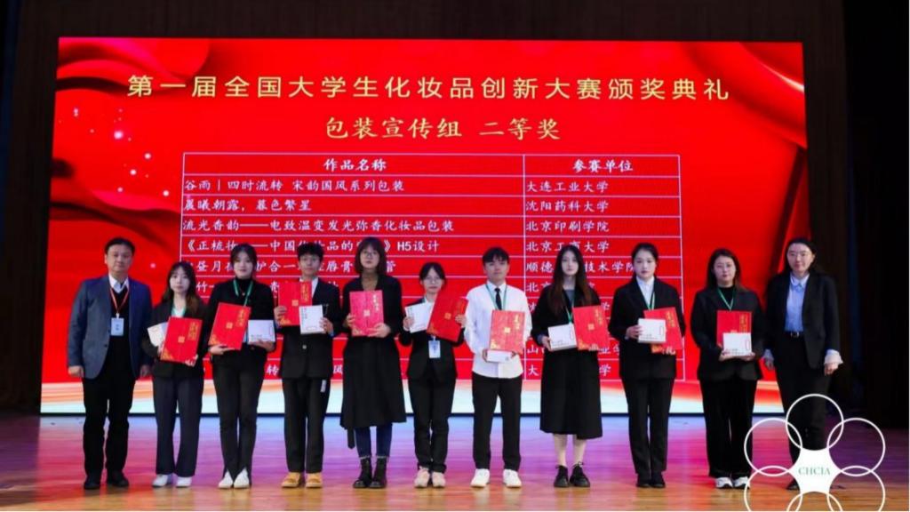 11月4日,由教育部高等学校轻工类专业教学指导委员会指导,中国日用化工协会主办,北京工商大学、化妆品学科建设与创新发展专业委员会承办的第一届全国大学生化妆品创新大赛圆满落幕。经过激烈比拼,太阳官网轻化与材料学院3项作品获奖。其中,高南、彭琦、陈燕舞老师指导的作品《焕颜计划——抗衰提亮“小太阳”次抛精华液》获创意组一等奖(获奖学生:王易文、张澳康、林嘉宇、陆声广、胡思敏)、《聚柔蚕丝凝润妆护合一双腔唇膏》获配方设计组一等奖(获奖学生:张翠萍、张文海、何韵仪、曾子豪)、《白昼月夜妆护合一双腔唇膏包装管》获包装宣传组二等奖(获奖学生:何韵仪、张翠萍、张文海、曾子豪、张澳康)。太阳官网一等奖获奖总数在全国高职院校中排名第一。