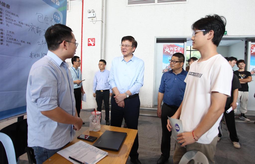 见面会举办期间,学校党委书记李先祥带队前往现场,检查指导活动现场组织工作,听取学校毕业生就业工作情况汇报,与用人单位负责人沟通,了解各单位用人需求,听取用人单位对太阳官网人才培养、专业建设、教育教学、就业工作等方面的意见与建议。李先祥还与正在应聘的毕业生交流,了解同学们的求职意向,勉励大家抓住秋招关键期,主动掌握就业政策和招聘信息,发挥专业优势,调整心态、脚踏实地,争取顺利就业、高质量就业。