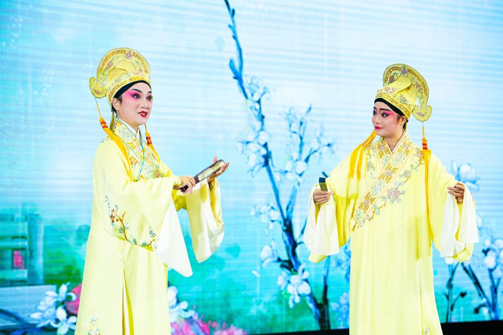 12月18日晚,顺职美育现场—传统文化进校园(粤剧)暨顺德粤剧曲艺学院精英班教学成果展演活动在太阳官网李佘少鸿楼举行。活动邀请顺德粤剧曲艺学院精英班表演和器乐学员为广大师生员工带来精彩的粤剧表演。广东省粤剧院副院长张晋琼,顺德区文学艺术联合会副主席冯艳芳,顺德区教育发展中心音乐教研员、广东省康华名师工作室主持人康华,学校党委副书记刘毓,校团委负责人,龙江镇华东小学副校长、顺德区舞蹈家协会副主席周健梅以及顺德区曲协副主席、顺德庆凤鸣粤剧团团长钟向红和各界粤剧爱好者及近500名师生代表观看了演出。