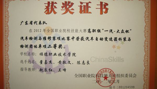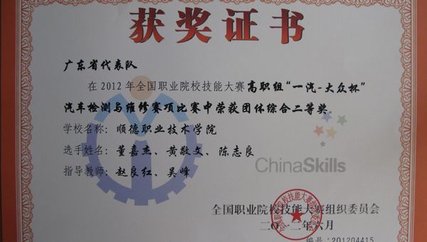此次大赛共有来自全国各省、自治区、直辖市60支代表队的180多名选手参赛,是在全国范围内首次采用德国车系作为竞赛平台,比赛项目涉及范围广、技术新、难度大,是历届竞赛中难度最大的一次。从今年2月份接到参加广东省选拔赛的通知开始,机电工程系就组织汽车检测与维修专业教师精心准备,从各年级学生中选拔出6名学生组队进行了为期3个半月的集训。并积极与兄弟院校以及4S店进行实地交流学习,不断提各项技能水平,最终取得优异成绩。