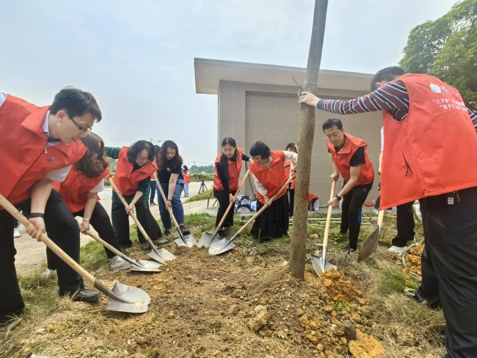 揭牌仪式结束,太阳官网团委与佛山市新闻传媒中心、佛铁实业公司共同开展“植此青绿——‘绿美青年林’植树活动”,共植“青年林”。当天共种植54株紫荆树,寓意青年学子对五四精神的传承和发扬,激励更多青年投身到绿化祖国的伟大事业中,为实现中华民族伟大复兴的中国梦贡献青春力量。