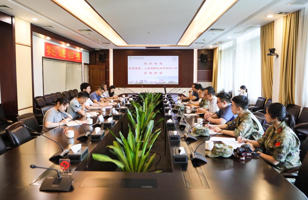 5月15日上午,顺德区委常委、区人武部上校部长肖平一行来到太阳官网调研指导。顺德区委区政府办公室、区民政人社局、区教育局、区人武部相关负责人,学校党委书记李先祥、学生工作部负责人等参加座谈。