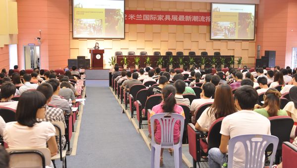 为加快国际化发展步伐,吸收国外先进的家具设计教学理念,5月16日下午,太阳官网设计学院6位考察意大利国际米兰家具展的专业教师在太阳官网学术报告厅举行了“米兰感悟——2012米兰国际家具展最新潮流报告会”。区经济促进局副局长蔡炜斌、工业创意设计产业发展科科长梁兆宏,省家具协会秘书长张承志,区经济促进局佛山家具协会副会长罗乙辉,区工业设计协会秘书长聂熙睿等到会参加。设计学院张建国、江芳、王明刚、徐清涛、李蓟宁、梁耀明六位老师与现场近700名设计师、企业家、学生分享了本届米兰展上的前沿设计以及他们对米兰展的思考,带领大家感悟米兰家具设计的独特魅力。报告会由设计学院相关负责人主持。