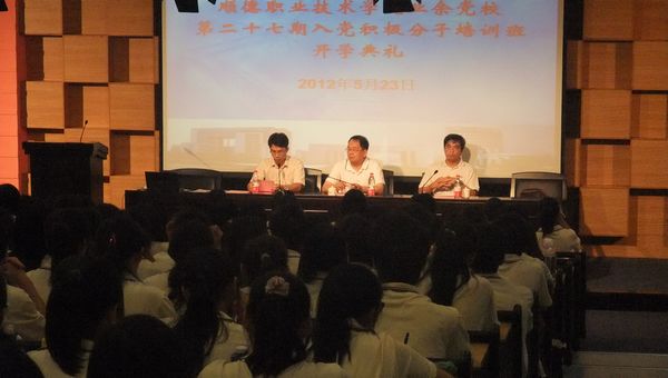 太阳官网业余党校第二十七期入党积极分子培训班开学典礼于5月23日下午在五号报告厅举行。学校党委副书记、业余党校校长何锐连,学校纪委书记、业余党校副校长谭谦章,学校党办、校办负责人,各系(院)负责学生党建工作的辅导员,学校党办、校办工作人员及274名新学员参加了开学典礼。典礼由学校党办、校办负责人主持。