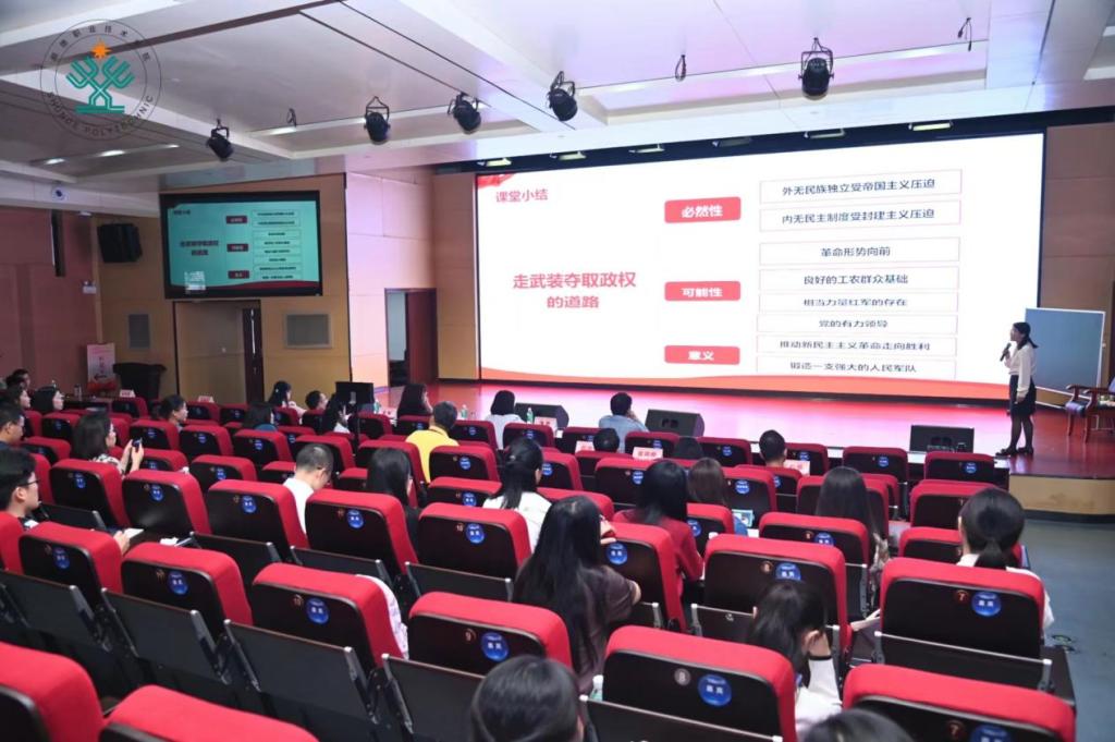 5月25日,广东省高校思政课教师教学基本功比赛高职“毛泽东思想和中国特色社会主义理论体系概论”“习近平新时代中国特色社会主义思想概论”2门课程现场复赛在太阳官网举行。活动邀请省内本科和高职院校5位教授担任评审专家,来自全省20余所高职院校的25位选手参加比赛,10余位高职院校马克思主义学院负责人和60余位思政课教师参与观摩交流。
