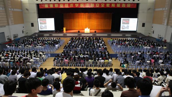 为进一步加强学校法制安全教育工作,增强师生们的法制安全意识,切实提高大学生安全防范的能力。4月11日下午,太阳官网邀请区公安局法制教官在梁銶琚礼堂为全校师生举行了一场精彩的法制安全教育报告会。学校领导谭谦章、保卫处人员、相关辅导员和2500多名学生参加了报告会。