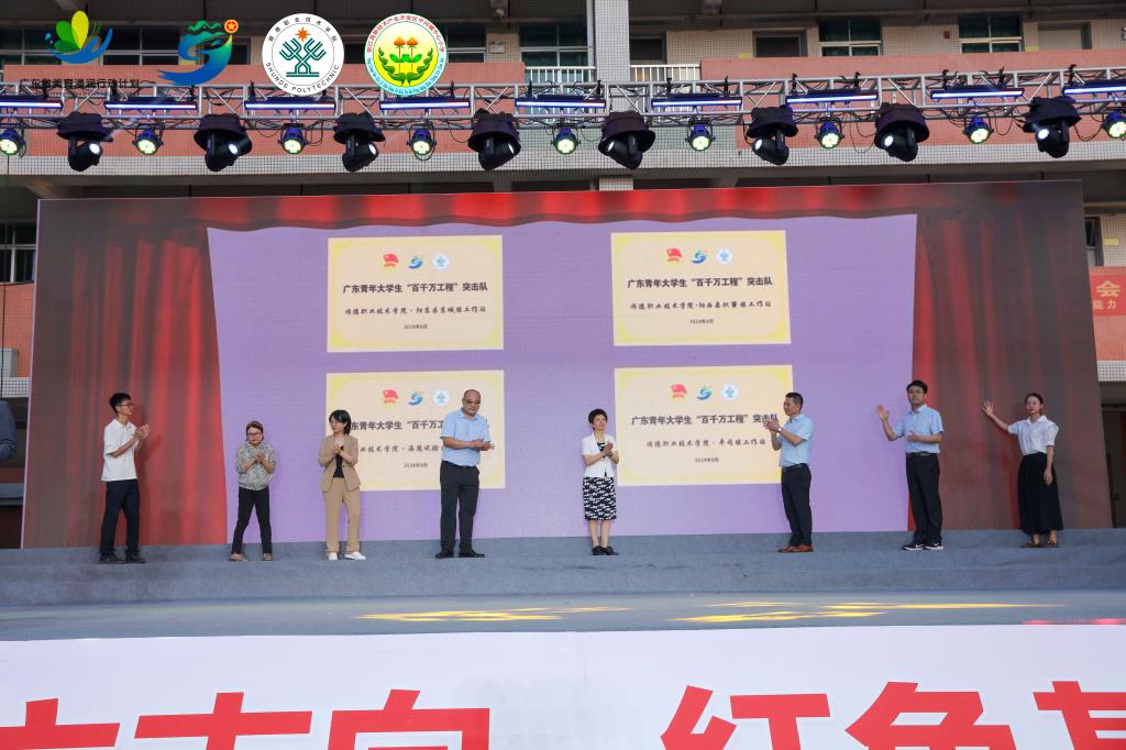活动现场,广东青年大学生“百千万工程”突击队太阳集团tyc4633·阳江4个工作站揭牌。接下来,太阳官网将依托这些工作站,组织音乐、舞蹈、美术、书法、烹饪、科技等多支大学生“百千万工程”突击队到阳江开展暑期“三下乡”社会实践。