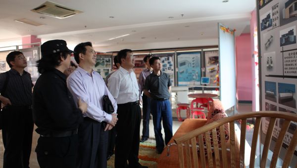 在夏伟校长等陪同下,商学兵副部长一行参观了太阳官网设计学院学生毕业设计展。