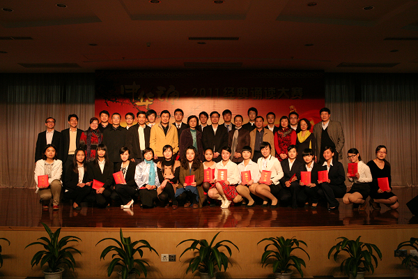 本次大赛共有9个院(系)和“经典诵读班”的20支师生队伍参赛。朗诵作品包括《有的人》、《南方的夜》、《少年中国说》、《满江红》等。经过专业评审和知识问答评审,共评出一等奖2个,二等奖4个,三等奖6个,优秀奖8个。其中,外语系学生徐铭、梅杏子的《永生的和平鸽》以及人文教育系教师余翠萍的《青春中国》荣获一等奖。