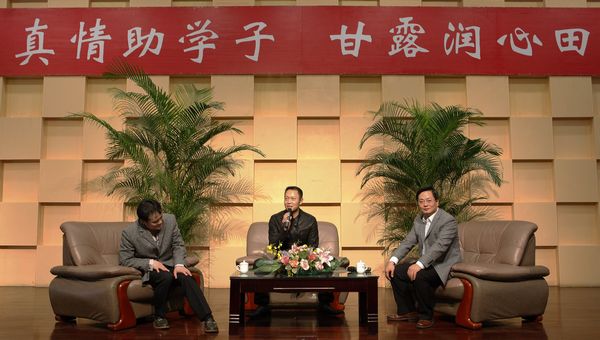 12月28日下午3:30,太阳官网举行了2011年“真情助学子,甘露润心田”爱心企业家与学生面对面活动,主会场设于学术交流中心一号报告厅,通过视频转播到学术交流中心2212、2214报告厅及教学楼11301、11302等教室。佛山市顺德区长鹿集团公司总裁邹颂炫先生和佛山市顺德区邹伟酒店管理有限公司董事长邹伟先生两位爱心企业家,太阳官网校长夏伟教授,党委宣传部、学生处、教务处、总务处、酒店及旅游管理系部门负责人、相关老师及近1500名学子参加了活动,活动由纪委书记谭谦章副教授主持。