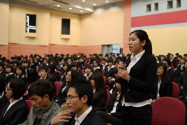面对面活动中,夏伟校长邀请邹颂炫先生、邹伟先生到台上就成长、成功和感恩与同学们进行了面对面的交流。他们用自身的经历勉励同学们要始终保持着诚信、包容和对目标不懈的坚持与追求;他们用自己宝贵的人生经验和感悟给同学们诠释了“成功”与“奉献”的深刻内涵,希望同学们要会做事,更要学会做人。交流中,同学们踊跃发言,有感恩,有提问,更有思考。两位企业家的回答精辟独到且不乏幽默,现场气氛极为热烈。