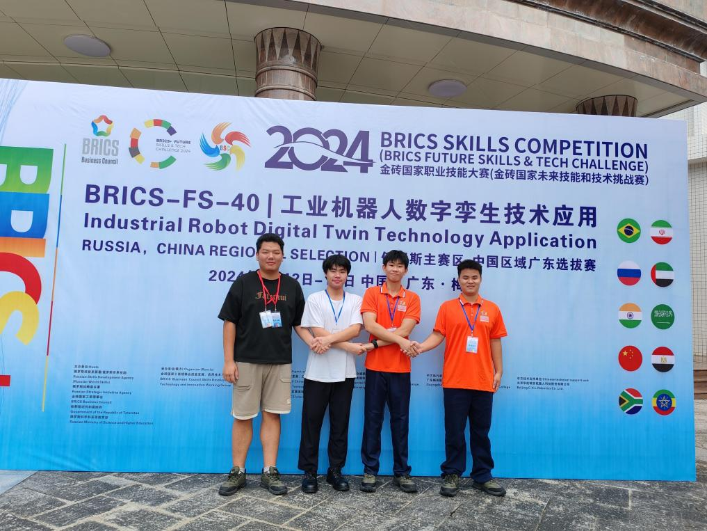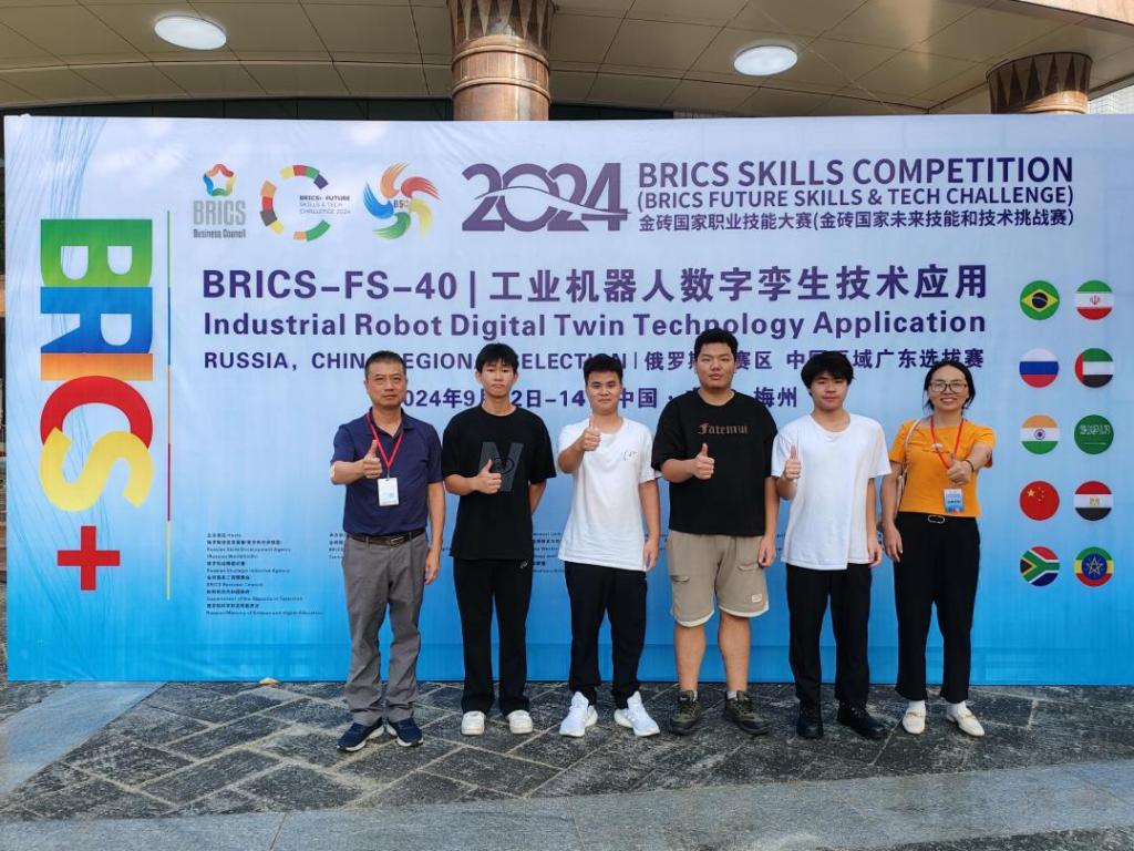 9月12日至14日,2024金砖国家职业技能大赛(金砖国家未来技能和技术挑战赛)工业机器人数字孪生技术应用(广东赛区选拔赛)在广东梅州职业技术学院举办。本次比赛共42支代表队参赛,经过一天的激烈角逐,太阳官网智能制造学院教师万向、罗建成指导的由工业机器人专业学生彭影钟、胡鸿辉组成的代表队以总分并列第一名的的优异成绩获省赛一等奖,成功入围国际赛,同时这两位老师指导的由工业机器人专业学生杨鑫涌、黄子楠组成的另一支代表队获省赛二等奖。