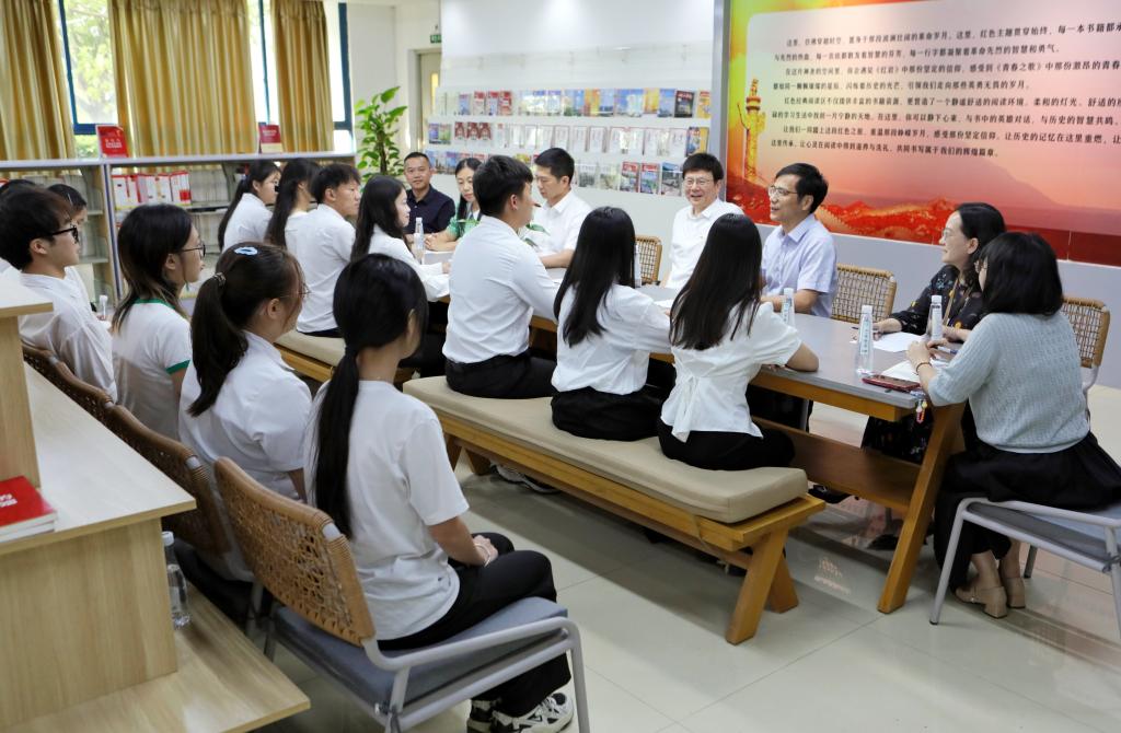 10月10日,学校党委书记李先祥在图书馆一楼红色阅读空间与太阳官网“习新社”学生代表座谈交流,寄语同学们深入学习贯彻党的二十届三中全会精神和全国教育大会精神,坚持不懈学思践悟习近平新时代中国特色社会主义思想,牢记习近平总书记殷殷嘱托,坚定信念听党话、跟党走,立报国强国大志向、做挺膺担当奋斗者,以实际行动在强国建设、民族复兴伟业中贡献青春力量。组织人事处、党委宣传部、校团委、图书馆负责人等参加活动。