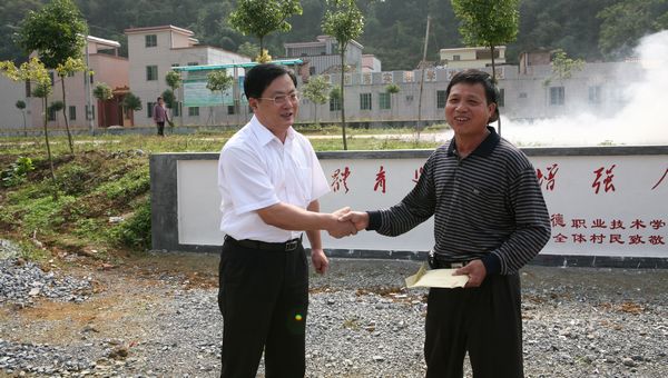 夏伟校长一行参观了由太阳官网捐建的塘埪篮球场和农家书屋,并与九龙镇领导共同为篮球场揭牌。夏伟校长代表学校送上由太阳官网捐赠的篮球场配套工程帮扶资金,希望他们早日走上文明、富裕、和谐的可持续发展道路。在塘埪村小组考察时,夏伟校长对塘埪新农村建设给予高度的评价,塘埪村小组房前屋后整洁干净,道路平坦宽敞,村容村貌发生了巨大变化。由太阳官网捐建的塘埪农家书屋思进图书室和图强自修室,在帮助塘埪和石角村民认真求知、积极进取、勤劳致富上起到了很好的作用。