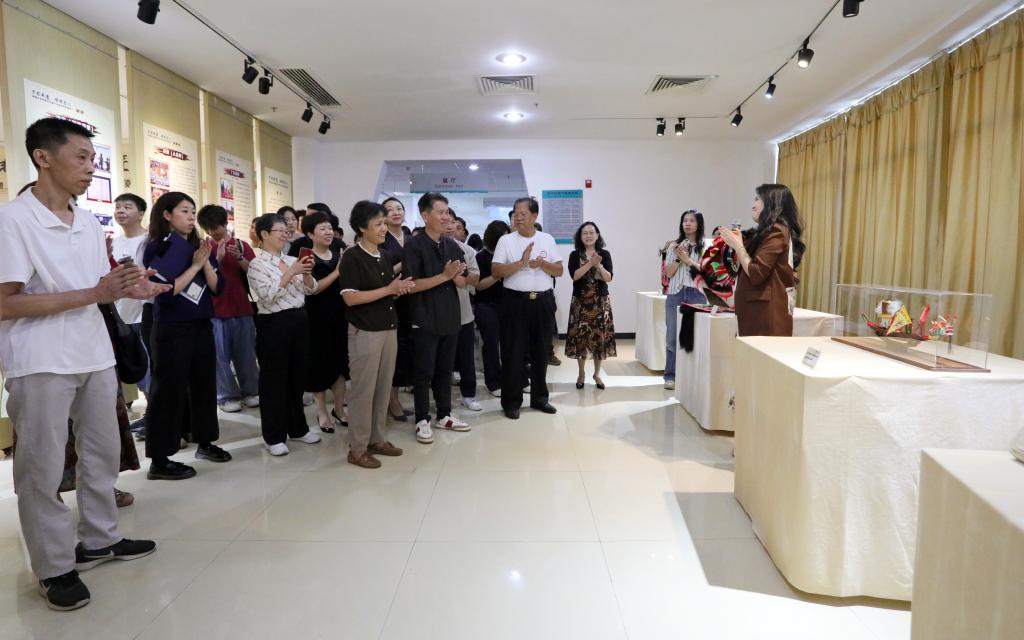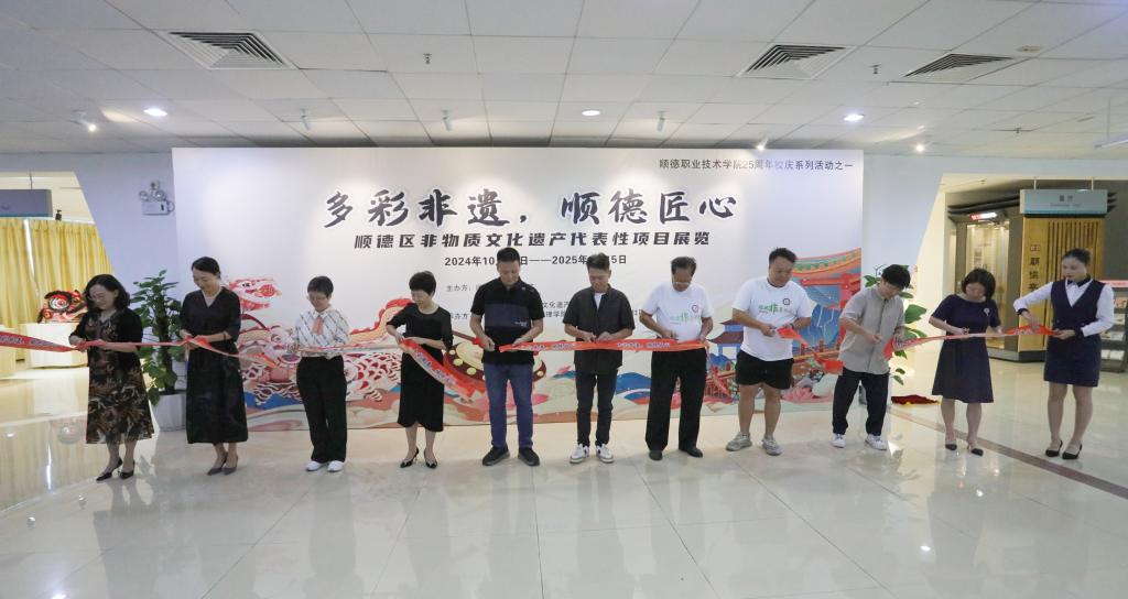 在热烈的掌声中,领导嘉宾共同为顺德区非物质文化遗产代表性项目展览剪彩。随后,大家在讲解员的带领下参观了展览。