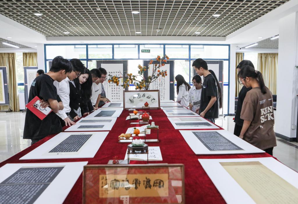 本次展览共展出师生书法作品103幅,其中毛笔书法作品58幅、硬笔书法作品45幅。这些作品紧扣主题、意蕴悠长、形式多样,满载着师生对学校的深厚情感和美好祝福。展览吸引了许多师生驻足欣赏,同学们纷纷表示,这次展览是一次难得的学习机会,通过观赏书法作品,不仅学习到多样的书法技巧,更体会到书法中蕴含的文化底蕴与情感表达,将以更加饱满的热情和更加坚定的信念,为传承弘扬中华优秀传统文化贡献力量。