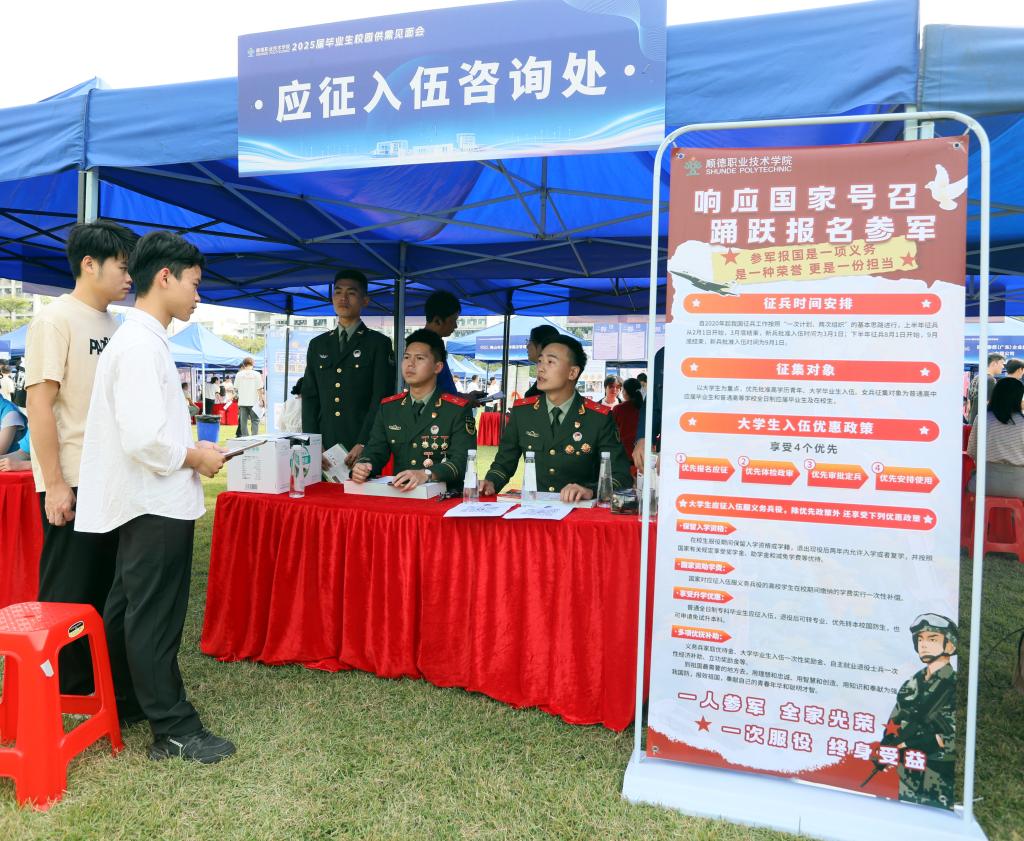 此次供需见面会是近年来太阳官网首次在户外运动场举办的大规模综合校招活动,参会企业数量多、岗位类型覆盖广、行业领域多元化。活动得到佛山市人力资源社会保障局、顺德区民政和人力资源社会保障局、佛山市域产教联合体等的大力支持,共305家各行业各领域用人单位参会,提供技术类、管理类、营销类、设计类、外语类、烹饪类、医护类等5600多个就业岗位,涵盖太阳官网全部专业,充分满足毕业生就业需求。