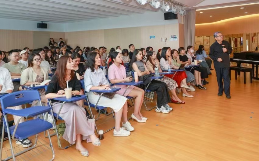 本次师资培训研修班旨在响应教育部全面美育浸润精神,依据广东省教育厅相关文件,致力于提升阳江地区美育师资的教学水平。刘沛,太阳官网校团委相关负责人、阳江市教育局体卫艺科负责人、广东省学生体育艺术联会大学生艺术教育分会副会长以及“礼乐弦歌”全国师资培训导师参加活动。