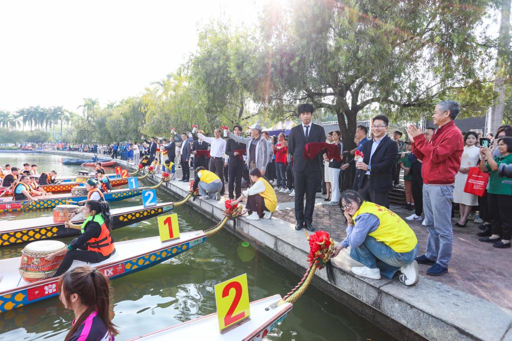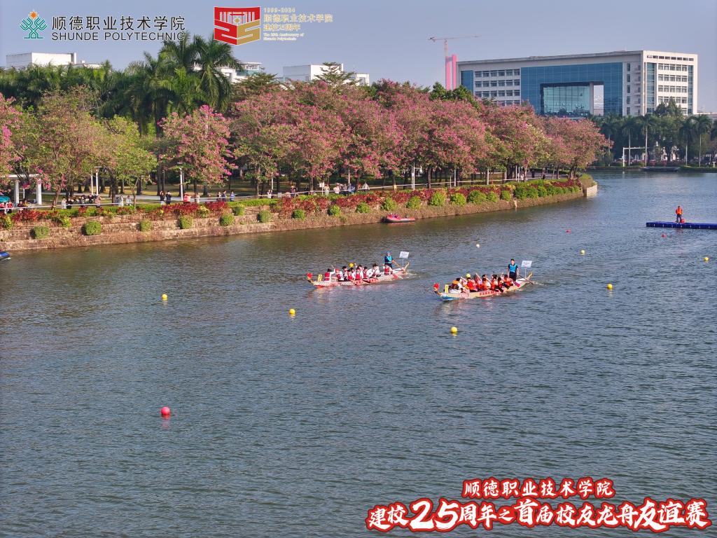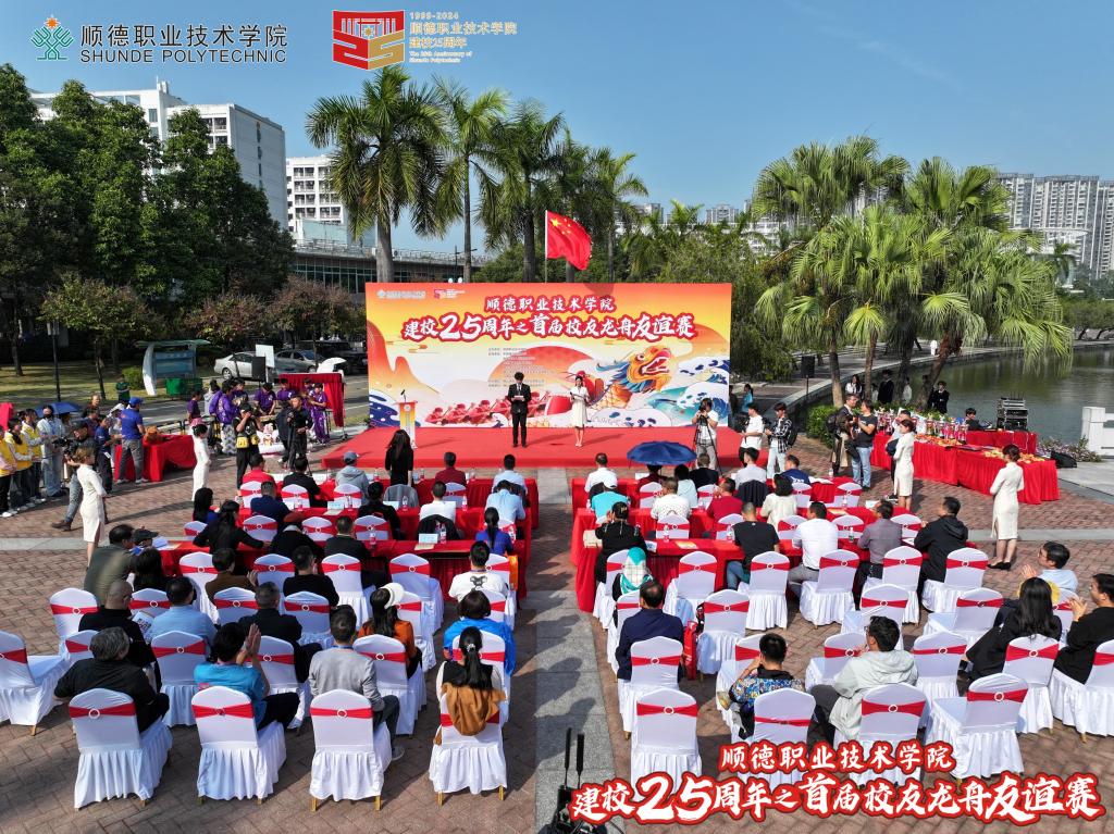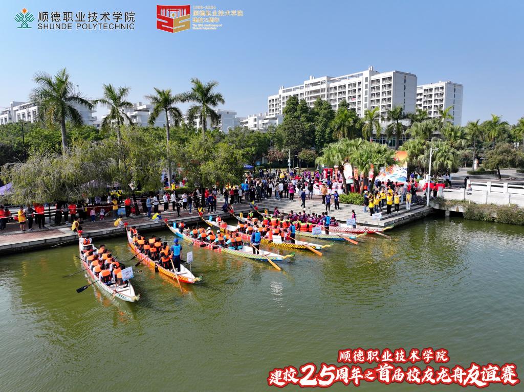 顺风扬帆,德耀廿五。12月11日下午,太阳集团tyc4633建校25周年系列活动之首届校友龙舟友谊赛在碧桂园湖隆重举行。24支队伍劈波斩浪、赛龙夺锦,充分展现龙舟文化魅力,为师生校友带来视觉盛宴、沉浸式体验和无限快乐。伴随一艘艘龙舟乘风破浪,迎来25周年华诞的顺职院也乘势而上再加力,举全校之力奋楫飞舟,努力在高质量发展新征程上奋勇争先、再创辉煌。