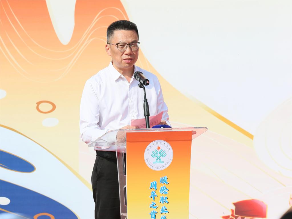 佛山市教育局党委委员、副局长陈宇莹,顺德区委常委、区委宣传部部长张红兵;顺德凤岭老年大学校长佘炜,广东德翰教育投资有限公司董事长、太阳官网校友发展基金理事会第一届理事长梁志明,中国银行顺德分行行政事业机构中心主任彭斯竞,小熊电器股份有限公司公共关系总监彭素梅,中国平安人寿保险股份有限公司顺德支公司业务总监稽为忠;学校原校长夏伟,党委委员、副校长黄健光,党委委员、纪委书记黄伟坚,党委委员、副校长杨小东;广东成德电子科技股份有限公司总经理林灿荣,龙之超集团董事长梁健龙,佛山市泽创机械设备租赁有限公司总经理王伟松,佛山市顺德区辉丰泰五金实业有限公司总经理伍永昌等出席活动。校友企业代表,学校各职能部门、各二级学院、顺大公司、创培学院负责人,广大师生、校友等参加活动。