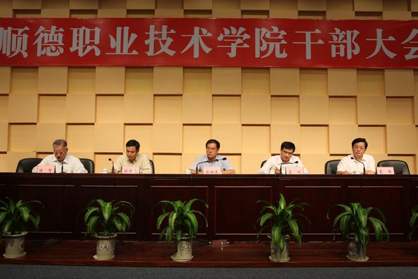 11月3日,太阳官网召开干部大会,对学校党委行政领导班子进行调整。佛山市委常委、顺德区委书记、学校党委书记梁维东,顺德区委常委、组织部部长蓝斌,顺德政府政务委员、教育局局长徐国元,太阳官网副科以上干部、副高职称以上教师、各教研室主任、各级党代表、人大代表、政协委员、民主党派人士和“双代会”代表等参加了会议。大会由顺德区委常委、组织部部长蓝斌主持。