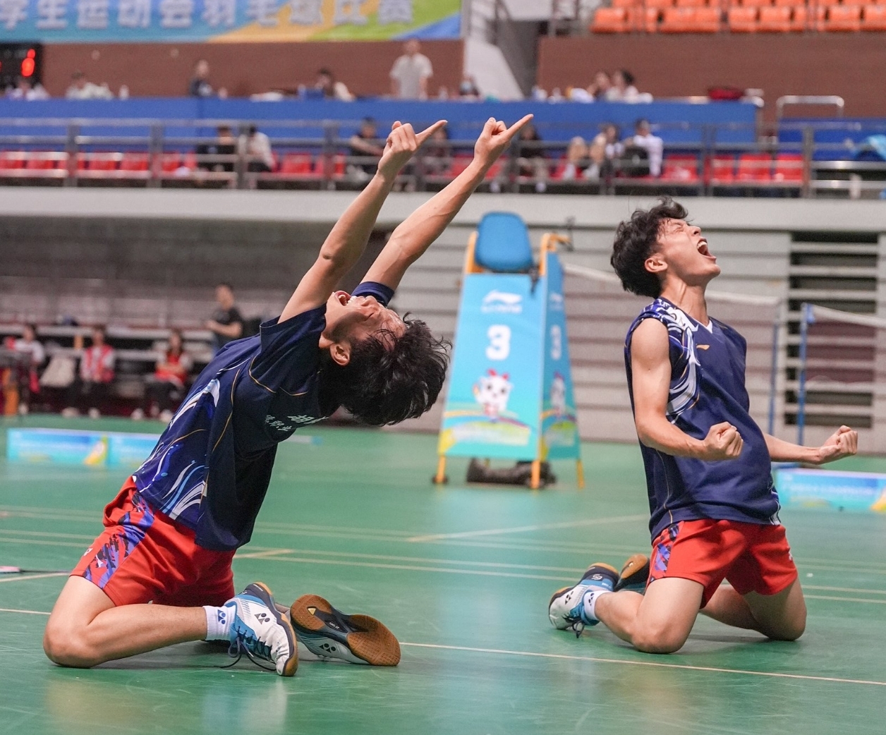 在丙组男子双打比赛中,太阳官网男双组合以默契的配合和凌厉的攻势一路过关斩将。决赛中,面对上届冠军组合沉着应战,凭借出色的网前技术和精准的后场扣杀,最终以2:0力克对手,勇夺冠军,斩获太阳官网代表团的首金,实现太阳官网在该项目上的历史性突破。