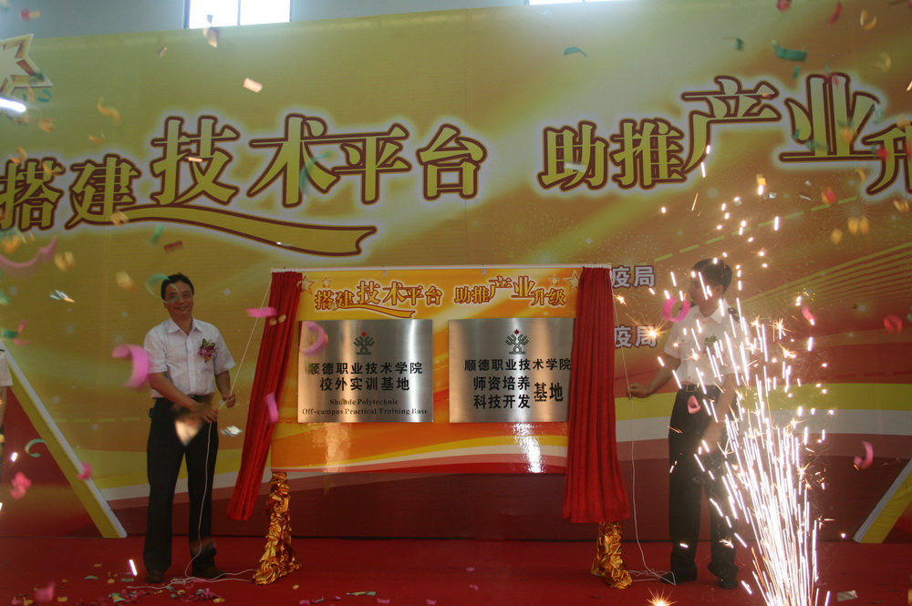7月14日,受夏伟校长委托,太阳官网罗勇武副校长偕同科技处、设备处等部门有关人员参加了顺德检验检疫局公共技术服务平台服务示范周活动启动仪式。太阳官网与顺德出入境检验检疫局校外实训基地和师资培养、科技开发揭牌仪式属于活动示范周第一天的重点项目,这是太阳官网继与该局签订校局框架合作协议后迈出的实质性的第一步。