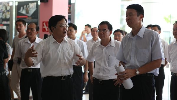 8月17日上午,佛山市委副书记、代市长刘悦伦率队一行18人在顺德开展调研。在佛山市委常委、顺德区委书记梁维东,顺德区委副书记、代区长黄喜忠陪同下到太阳官网考察。太阳官网夏伟院长、何锐连副院长、罗勇武副院长、陈粟宋副院长、办公室主任徐刚等有关人员陪同参观并接待了来宾。