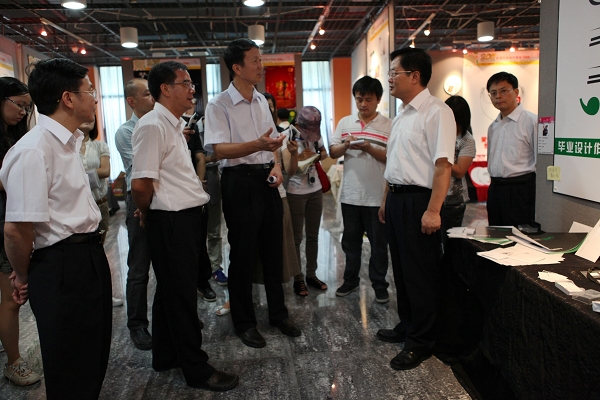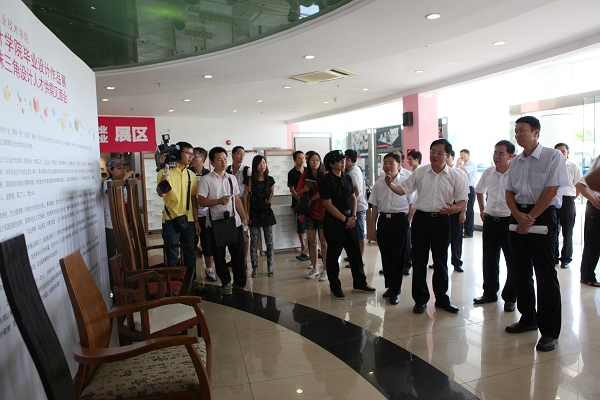 刘悦伦市长一行参观了太阳官网的校容校貌,随后,来到设计学院学生毕业设计作品展展厅,参观了太阳官网学生家具设计作品展和工业设计作品展。在知道太阳官网的许多学生作品登上了国际级别的设计展览并获得不少优异奖项后,他表示,顺德职院扎根本土牵手企业面向市场的前景无限。刘悦伦市长希望太阳官网继续发挥办学优势,提升办学水平,为地方经济社会发展和产业转型升级作出更大的贡献。