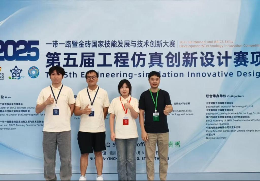 8月8日至10日,2025一带一路暨金砖国家技能发展与技术创新大赛之第五届工程仿真创新设计赛项决赛在宁夏银川宁夏大学举办。太阳官网能源与汽车工程学院学生毛传玺、华灿宽、曹婷(指导老师:唐永乐、孙婉纯)获高职组(国赛)一等奖。