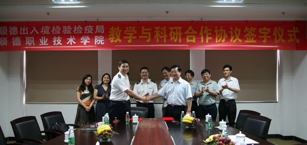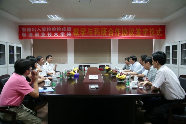 随后,夏伟校长代表太阳官网与顺德出入境检验检疫局局长程海签定了《教学与科研合作协议》。双方就学生顶岗实习、实验实训室建设及课程建设、双师型素质教师培养、兼职教师培养等方面进行了广泛的交流。