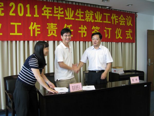 会上,学生处负责人对2010年毕业生就业工作进行了总结,各系院主任(院长)、书记分别与夏伟校长签订了毕业生就业工作责任书,纪委书记谭谦章就学校2011年毕业生就业工作要点作了布置,夏伟校长就进一步扎实有效地做好学校的就业工作,作了重要讲话。