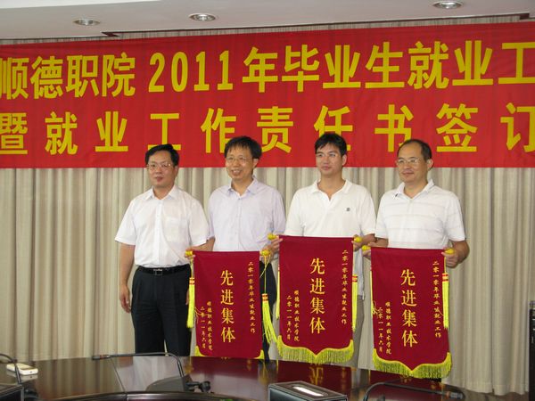 会上还表彰了医学系、外语系、电子与信息工程系等三个“2011年就业工作先进集体”和胡庆深等21名“2011年就业工作先进个人”,夏伟校长为先进集体颁授了锦旗,谭谦章纪委书记为先进个人颁发了荣誉证书。