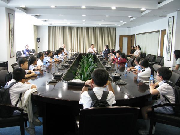 何锐连副院长首先在行政楼大堂向顺德联谊总会伍冕端小学的师生介绍了太阳官网的周边环境及校园整体格局。随后,双方在热烈友好的气氛中进行了座谈。何锐连副院长代表太阳官网向伍冕端小学的师生们表示热烈的欢迎,并就顺德区及太阳官网的地理位置、人文环境、教育条件等情况作了详细的介绍,座谈会上,何锐连副院长一一回答了学生们提出的问题,让他们了解了顺德区及太阳官网的发展状况,增加了青少年对顺德的了解与喜爱。