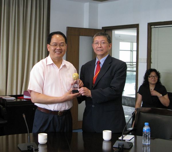 最后,双方互赠纪念品并参观校园。