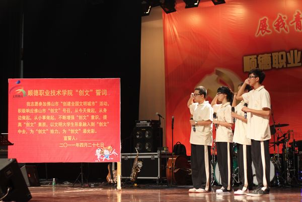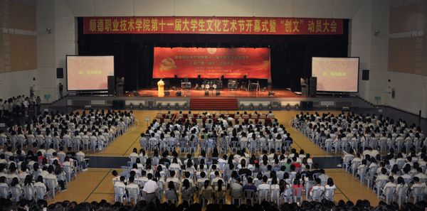 4月27日晚,太阳官网第十一届大学生文化艺术节开幕式暨“创文”动员大会在梁銶琚堂顺利举办。顺德团区委书记柯宇威,中国移动集团顺德分公司大良服务销售中心总经理冉小容,太阳官网领导谭谦章,党委宣传部、总务处、信息中心、学生处等相关部门负责人及2000多名师生出席了本次活动。
