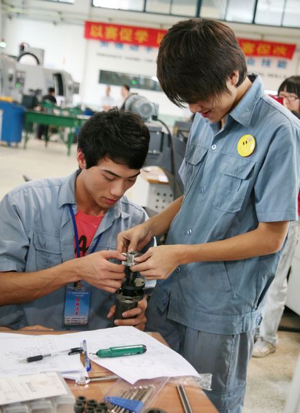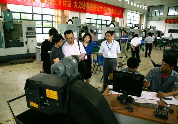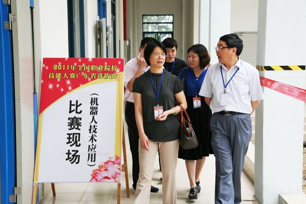根据《关于举办2011年全国职业院校技能大赛的通知》(教职成函〔2011〕2号)精神,5月6日—7日,太阳官网承办的2011年全国职业院校技能大赛广东省选拔赛的“机器人技术应用”、“机械部件创新设计与制造”两个赛项顺利举行。全省22所高职院校的34支代表队参加了比赛,参赛选手、指导教师、以及专家裁判共计200余人。广东省教育厅高教处吴念香副处长、张坚雄科长,广东省高校数控专业指导委员会秘书长王平,太阳官网夏伟校长、陈粟宋副校长亲临各赛场视察指导。