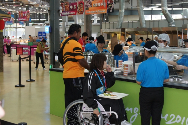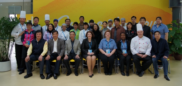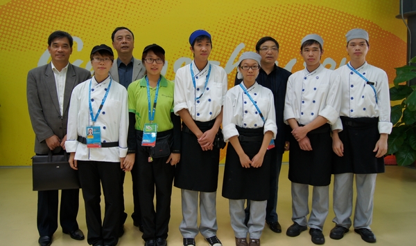 亚残会服务期间,学校领导罗勇武、陈粟宋、谭谦章、鼎瀛物业管理公司、财务处、学生处、设备处以及酒店及旅游管理系领导,在亚运会餐饮服务供应商——美国爱玛客服务产业中国有限公司人力资源总监奥利女士、运营总监塔玛拉女士的陪同下,亲切慰问了太阳官网参加亚残会餐饮服务的师生,并参观和考察了亚运厨房和餐厅。