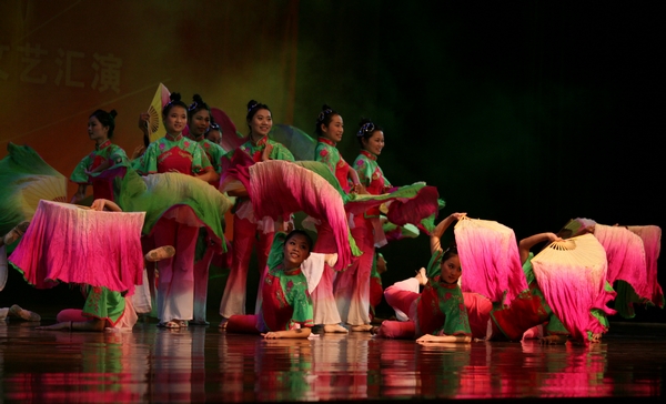 文艺演出在欢快喜庆、激动人心的气氛中进行,来自全校19个特长生班的学生代表表演了歌曲、舞蹈、器乐演奏、跆拳操、朗读等节目。管乐队《解放区的天》拉开了演出序幕,男女声二重唱《好人好梦》、男生独唱《多情的土地》等用优美的旋律征服了观众;舞蹈《六月清荷》柔美轻盈的舞姿令观众为之倾倒;朗诵诗《雨巷》、《少年中国说》等,抑扬顿挫,声情并茂,很好地把握了诗的意境特点和语言表现风格;钢琴独奏、萨克斯独奏、小提琴独奏、弦乐合奏、葫芦丝三重奏等多种表演形式,充分地展现了同学们的音乐才华。本台晚会是对太阳官网一年来人文素质教育的一次检阅,见证了同学们在并不太长的时间内经过刻苦训练、快速成长的历程。