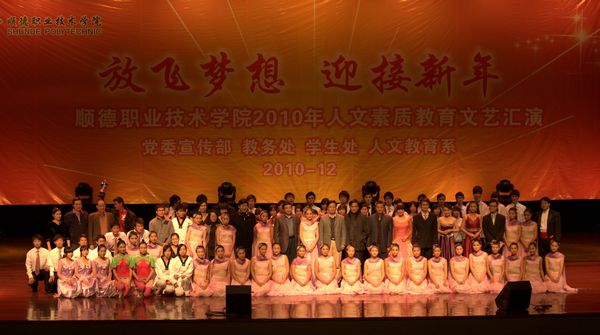 12月27日晚,由太阳官网党委宣传部、教务处、学生处、人文教育系联合举办的“放飞梦想 迎接新年——2010年人文素质教育文艺汇演”在梁銶琚礼堂举行。夏伟院长、陈粟宋副院长、纪委谭谦章书记和全校2600余名师生观看了演出。
