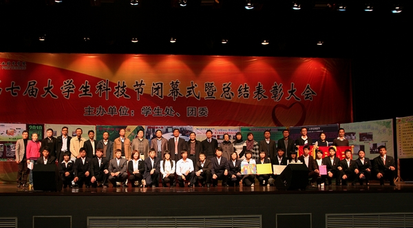 2010年12月29日下午,太阳官网第七届大学生科技节闭幕式暨总结表彰大会在梁銶琚礼堂顺利举行。学校陈粟宋副院长,纪委谭谦章书记,党委宣传部、教务处、科技处、学生处、团委相关负责人,各院系党总支书记等师生代表共2000多人参加了本次活动。